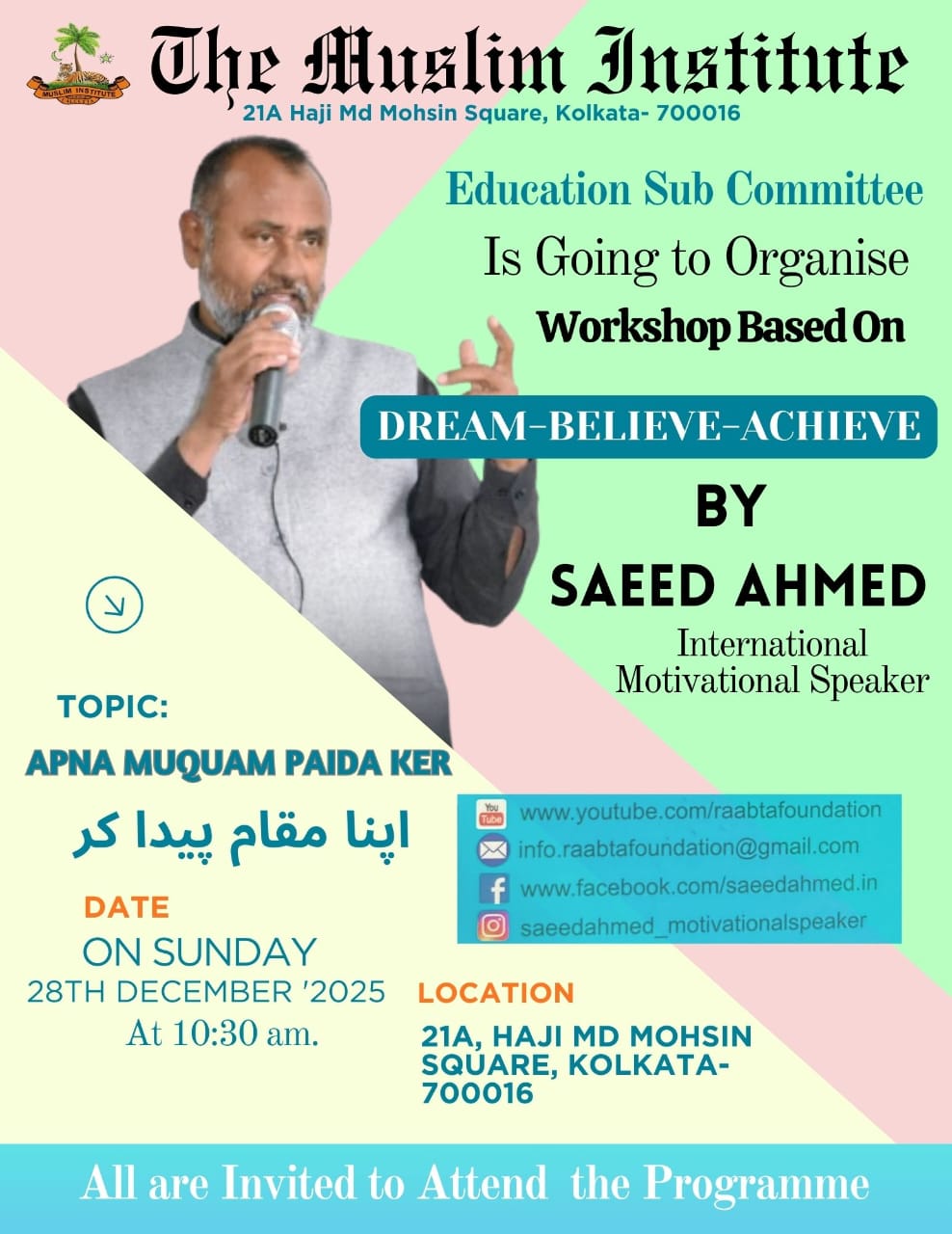 Apna Muqam Paida Kar – By Saeed Ahmed – Motivational Speaker at The Muslim Institute, Kolkata – 28th December 2025